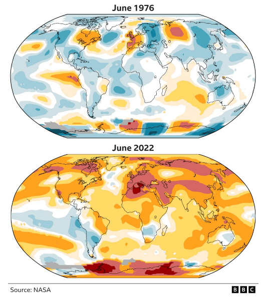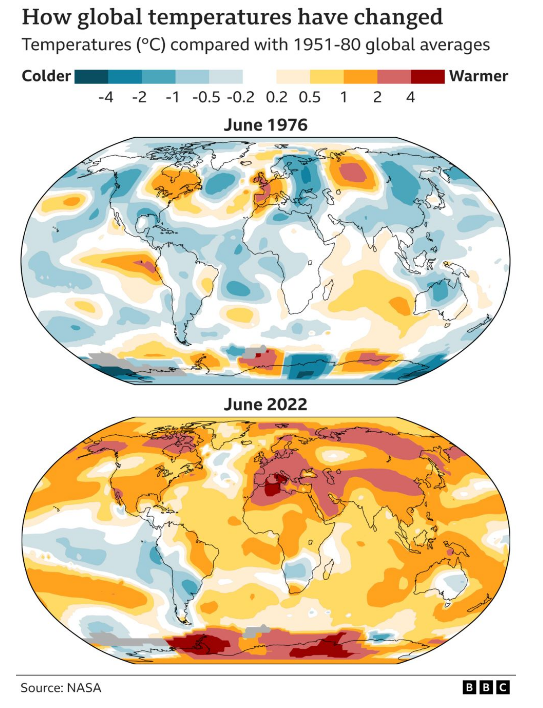Excellent graphic from BBC news comparing global temperatures in June 2022 to those in June 1976.